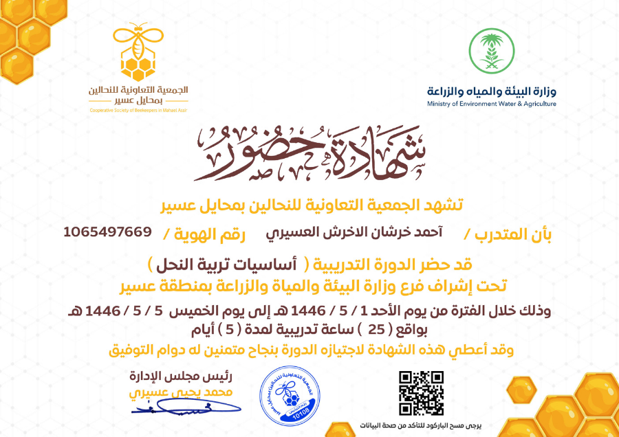 تقرير دورة أساسيات تربية النحل المجموعة الثانية