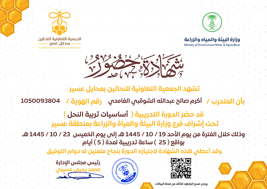 تقرير دورة أساسيات تربية النحل المجموعة الثانية