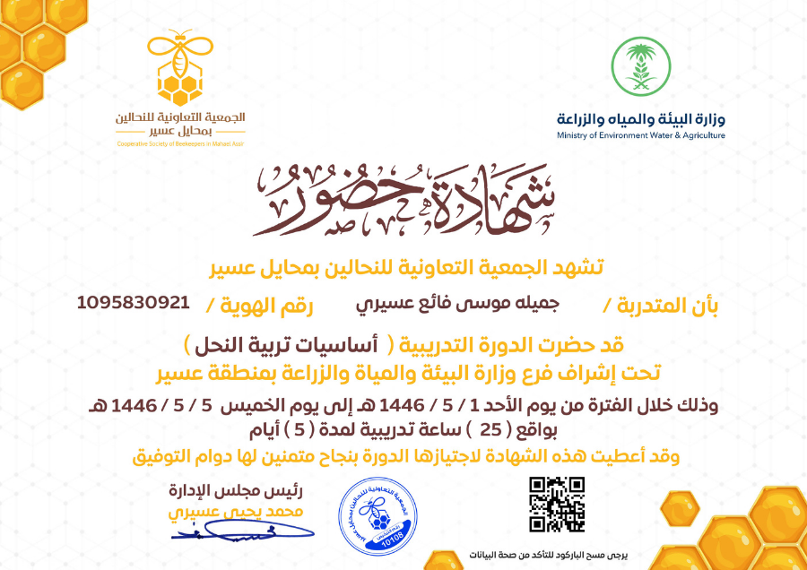 تقرير دورة أساسيات تربية النحل المجموعة الثانية