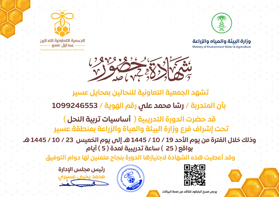 تقرير دورة أساسيات تربية النحل المجموعة الثانية