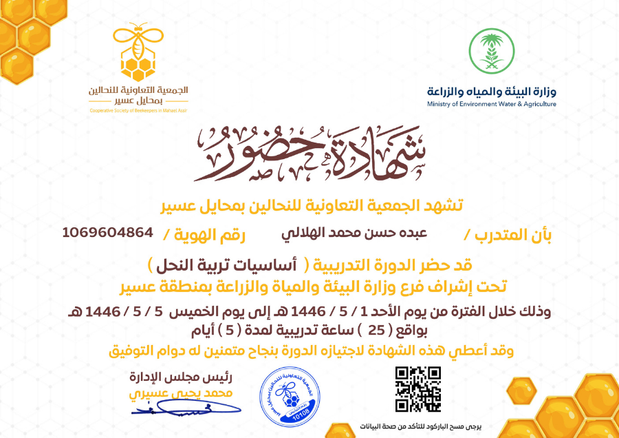 تقرير دورة أساسيات تربية النحل المجموعة الثانية