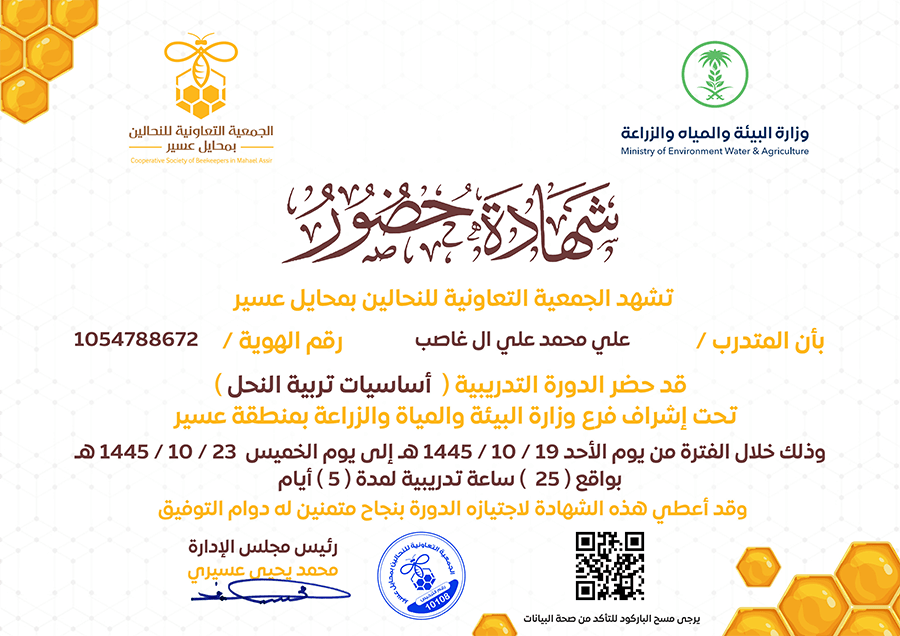 تقرير دورة أساسيات تربية النحل المجموعة الثانية