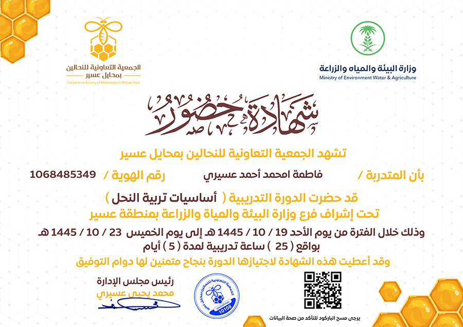 تقرير دورة أساسيات تربية النحل المجموعة الثانية