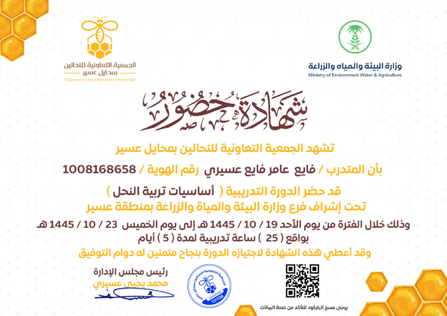 تقرير دورة أساسيات تربية النحل المجموعة الثانية