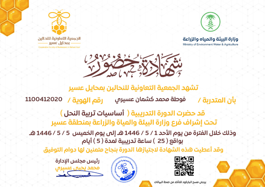 تقرير دورة أساسيات تربية النحل المجموعة الثانية