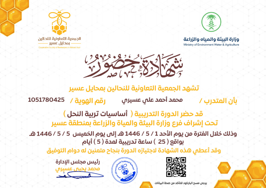 تقرير دورة أساسيات تربية النحل المجموعة الثانية
