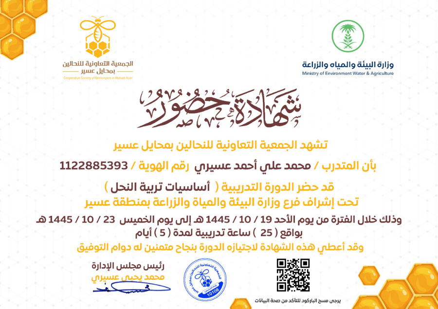 تقرير دورة أساسيات تربية النحل المجموعة الثانية