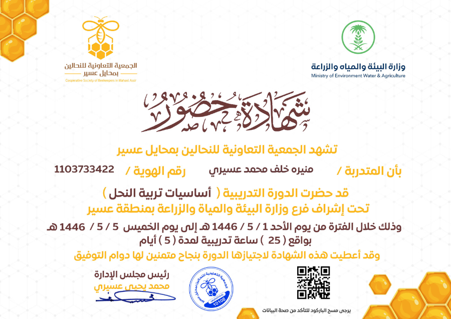 تقرير دورة أساسيات تربية النحل المجموعة الثانية