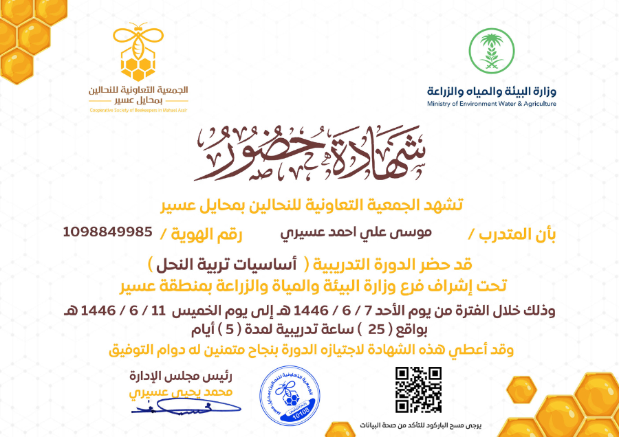 تقرير دورة أساسيات تربية النحل المجموعة الأولى