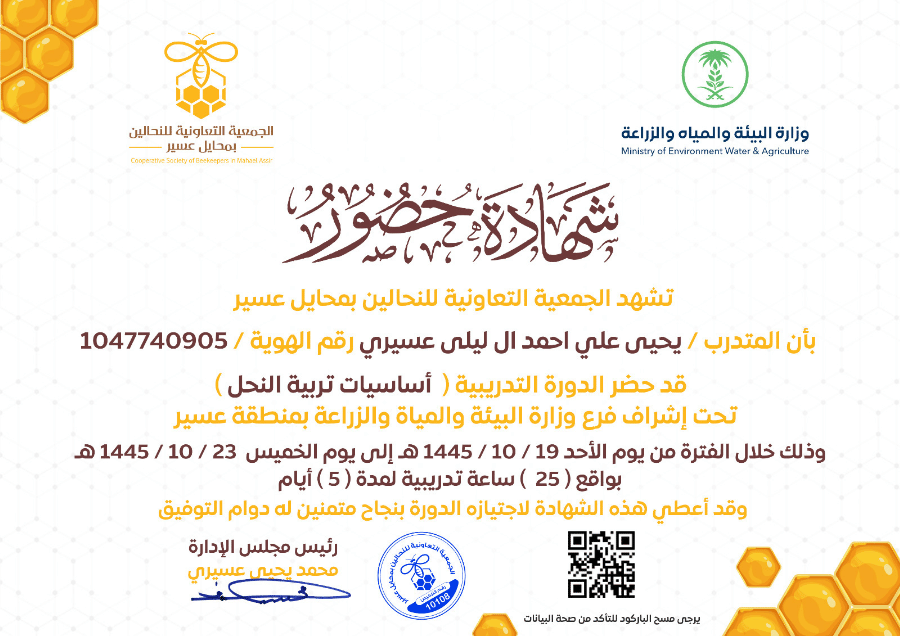 تقرير دورة أساسيات تربية النحل المجموعة الثانية